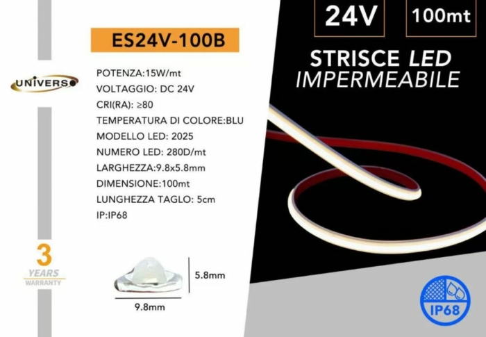LED Strip Light 24V 280LED 100mètres bleu Coupe(5cm)